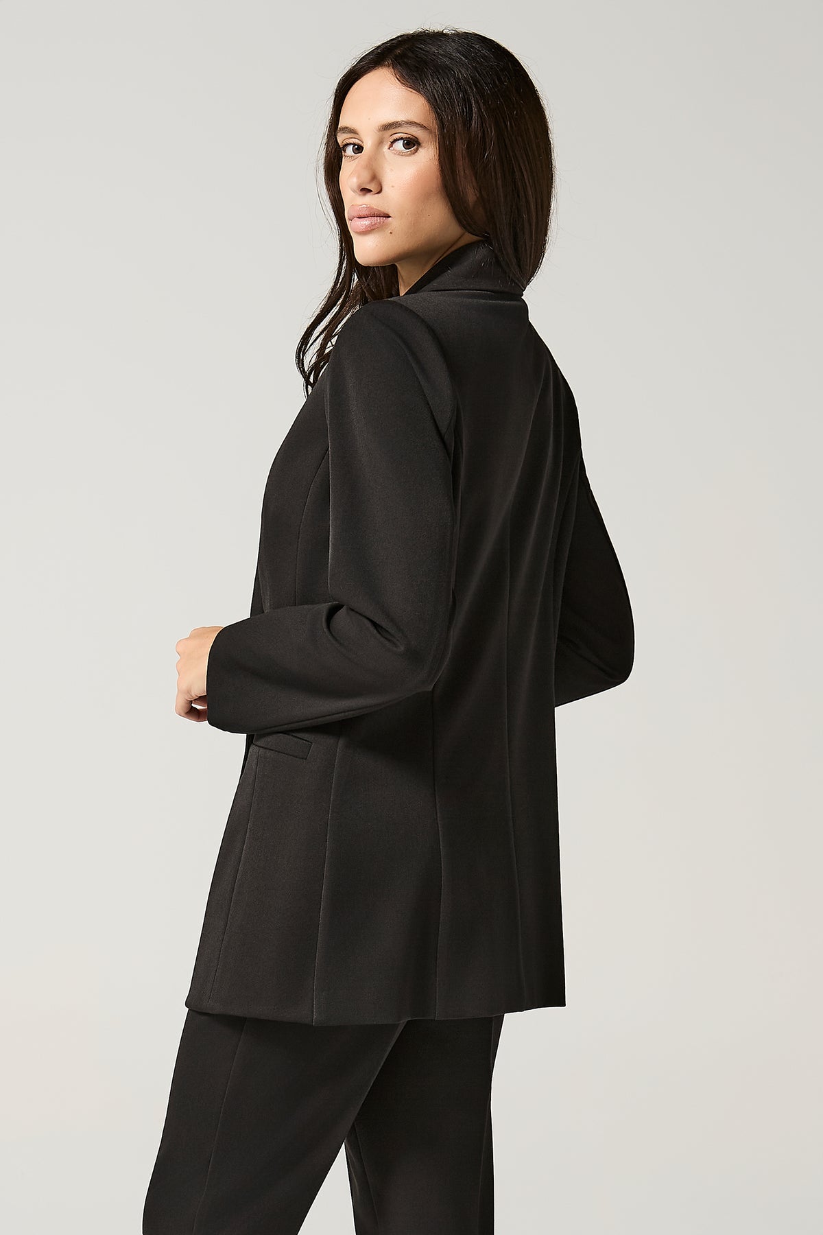 Blazer doppiopetto, revers a lancia, tasche laterali a filetto.