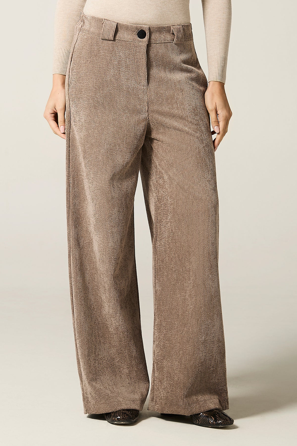 Pantalone chino in velluto a coste, tasche leterali alla francese, elastico interno in vita posteriore.
