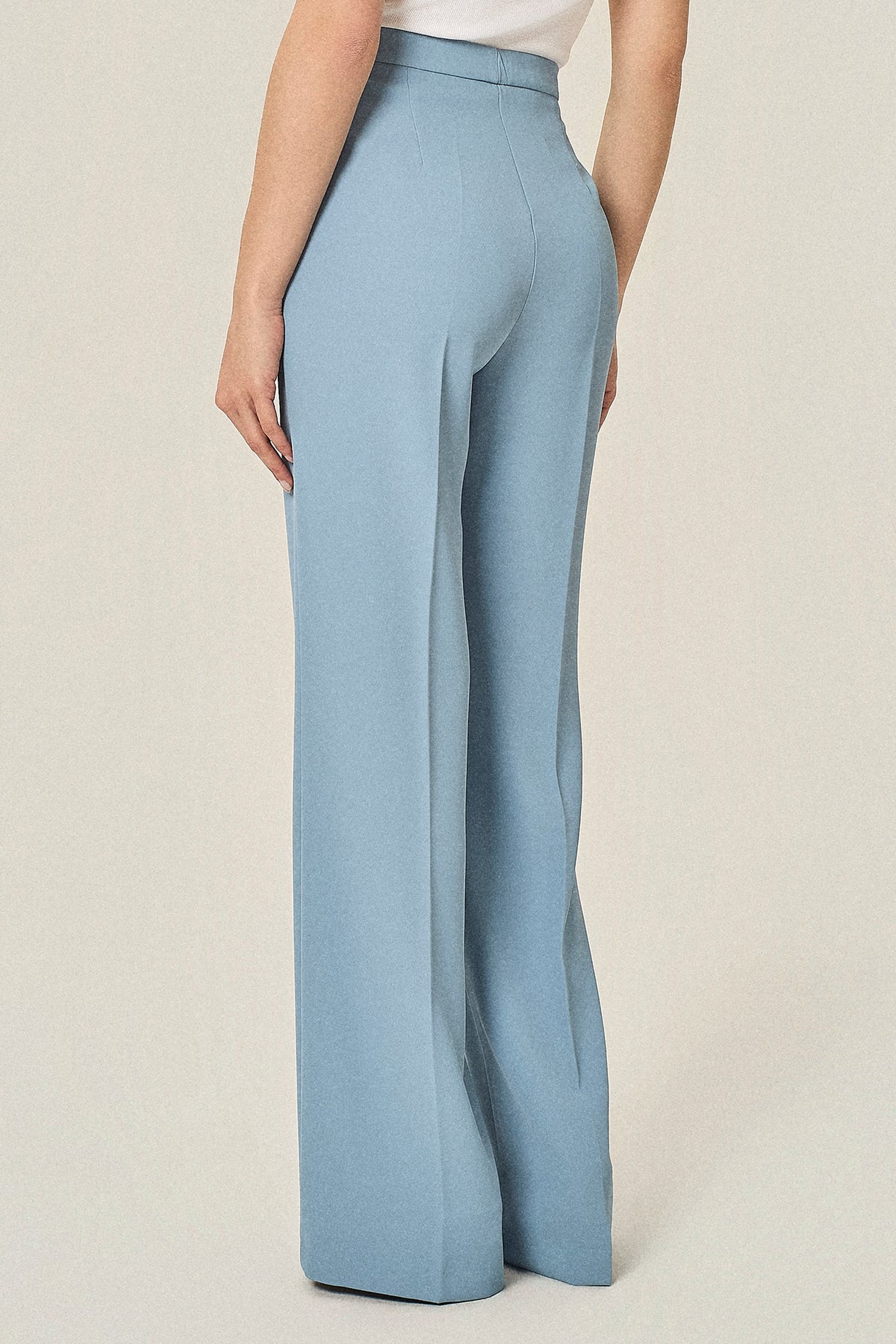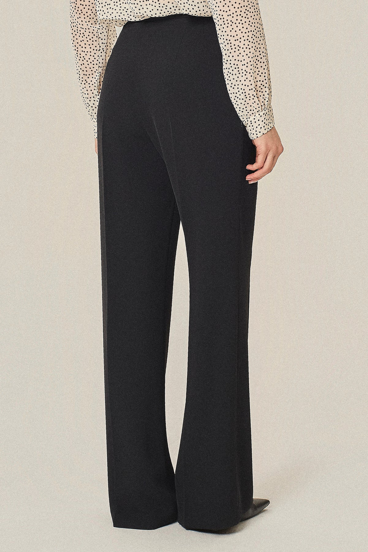 Pantalone chino in cady stretch, tasche laterali alla francese, gamba con piega stirata.