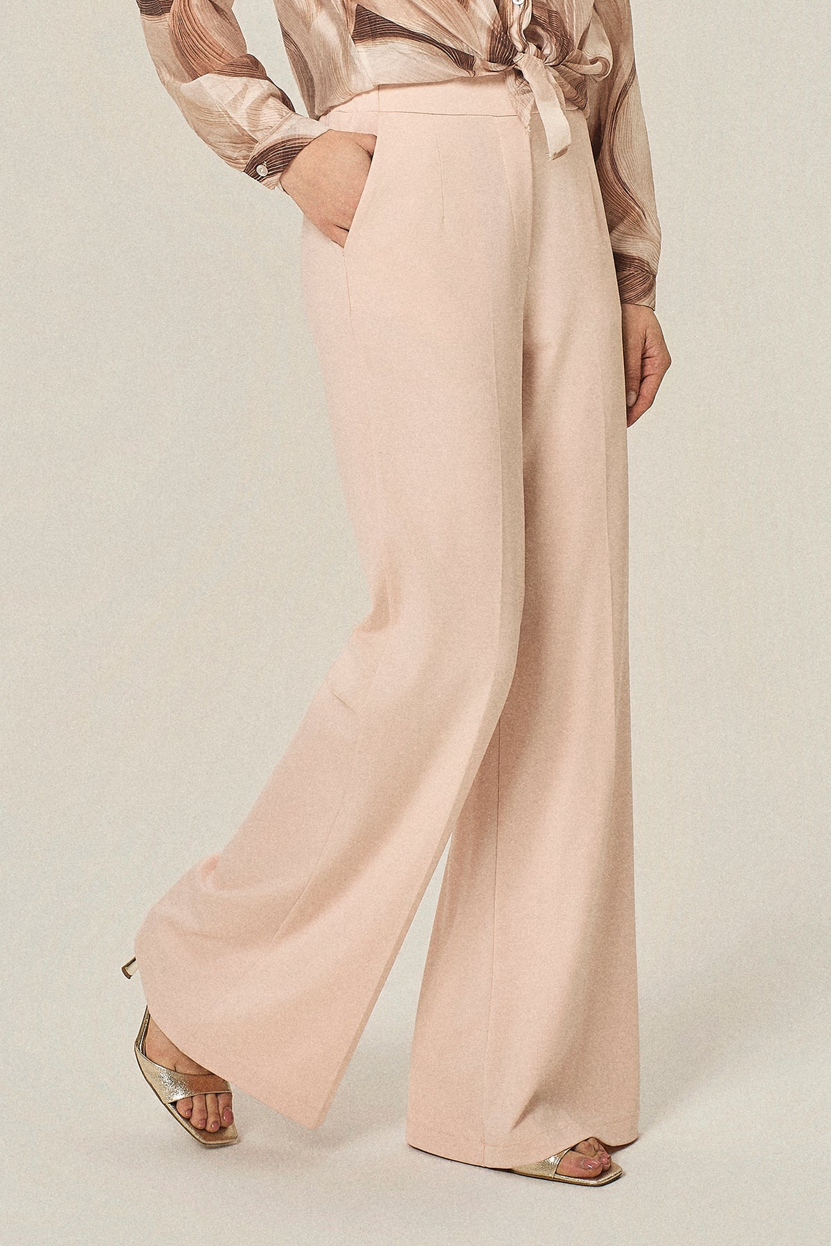 Pantalone in punto milano stretch, elastico interno in vita, tasche laterali alla francese, pinces davanti.