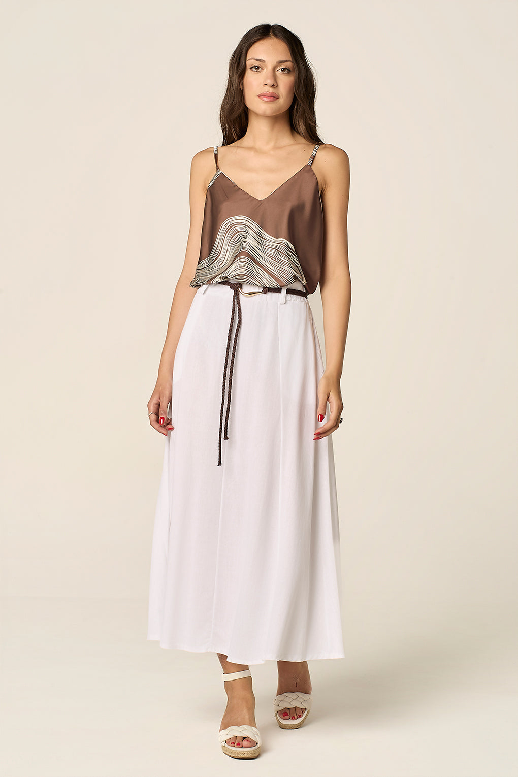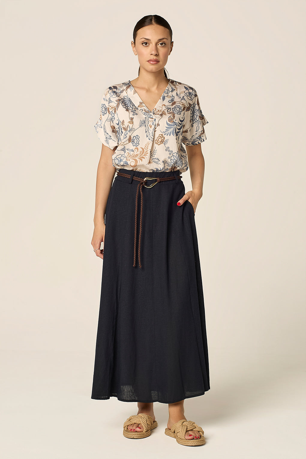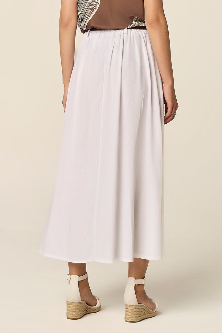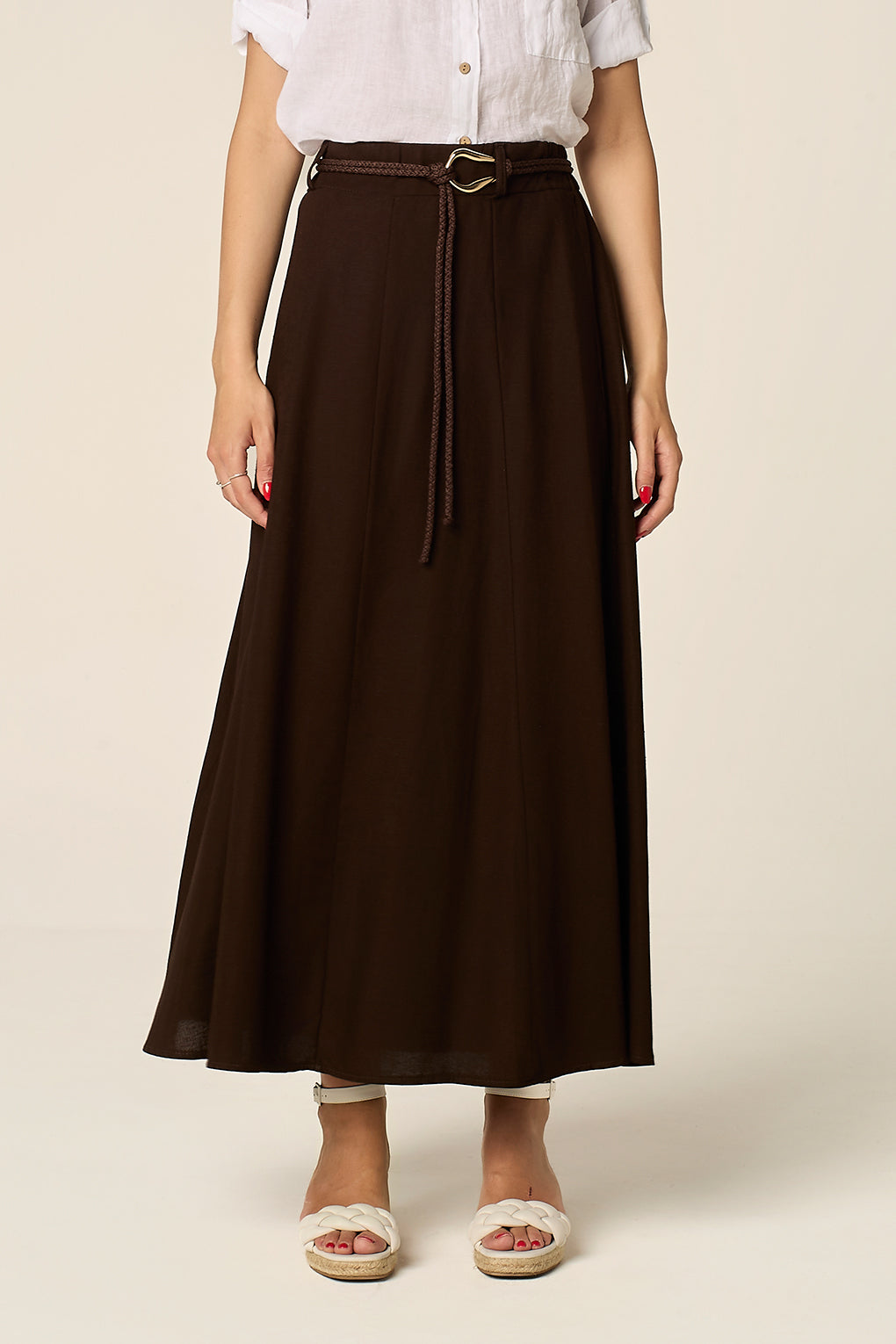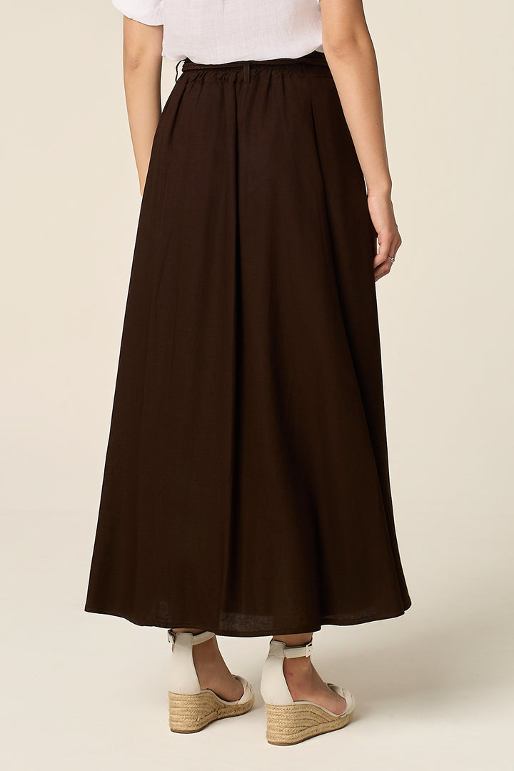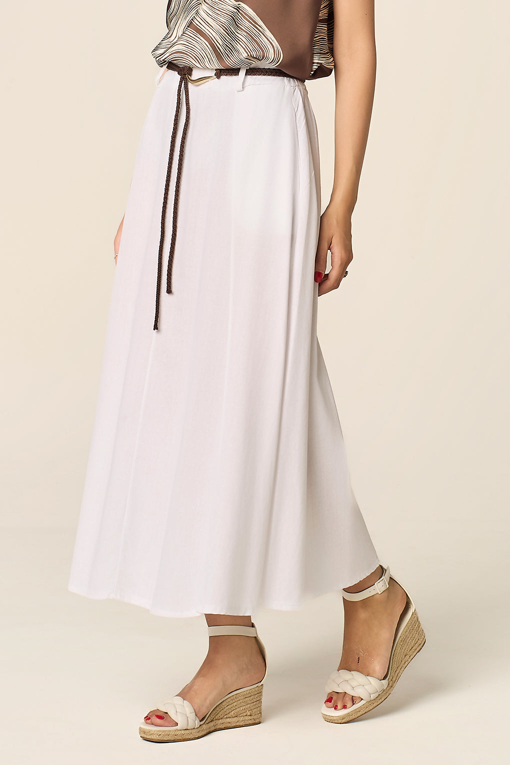Gonna lunga in lino viscosa, elastico interno in vita, cinta in corda.